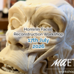 This full-day (7-hour) hominin facial reconstruction workshop focuses on Homo erectus and is designed for medical artists who want to deepen their anatomical understanding of facial reconstruction through hands-on making. Participants will create a facial approximation layer by layer, sculpting each facial muscle in turn onto a prepared 3D-printed skull. Wax and materials are provided, and completed reconstructions can be taken home at the end of the day.